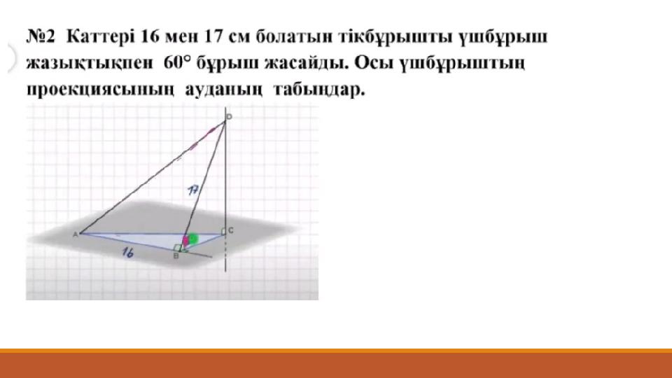 №1.Бір төбесіндегі үш жағының аудандары бойынша 21 м