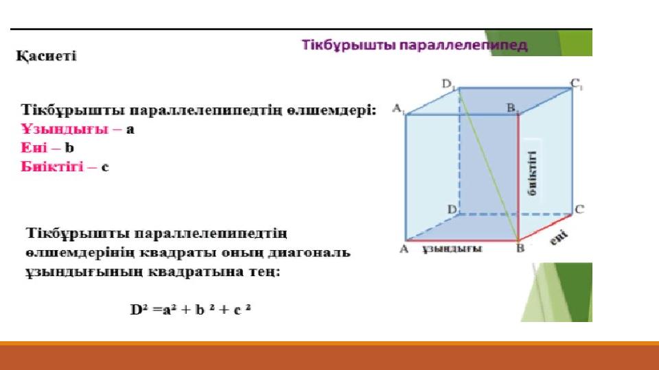 10.3.7 - тікбұрышты параллелепипедтің қасиеттерін