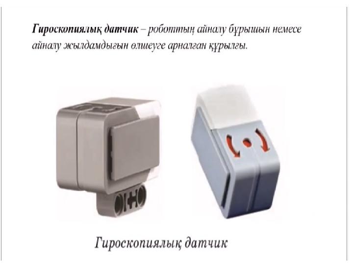 Сабақтың тақырыбы: «Гироскопиялық датчик» Оқу мақсаты •5.3.4.4 гироскопиялық датчиктің жұмыс істеу принципін түсіндіру; •5.3.3.1 роботтың бұрыштық бейімділігін анықтау үшін бағдарламалар жасау.