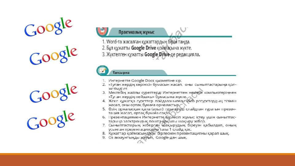 Google drive-та құжатты бірлесіп жұмыс істеу қызметін пайдалану 3 сабақ слайд