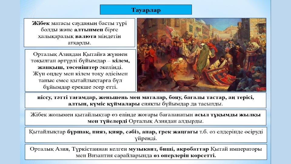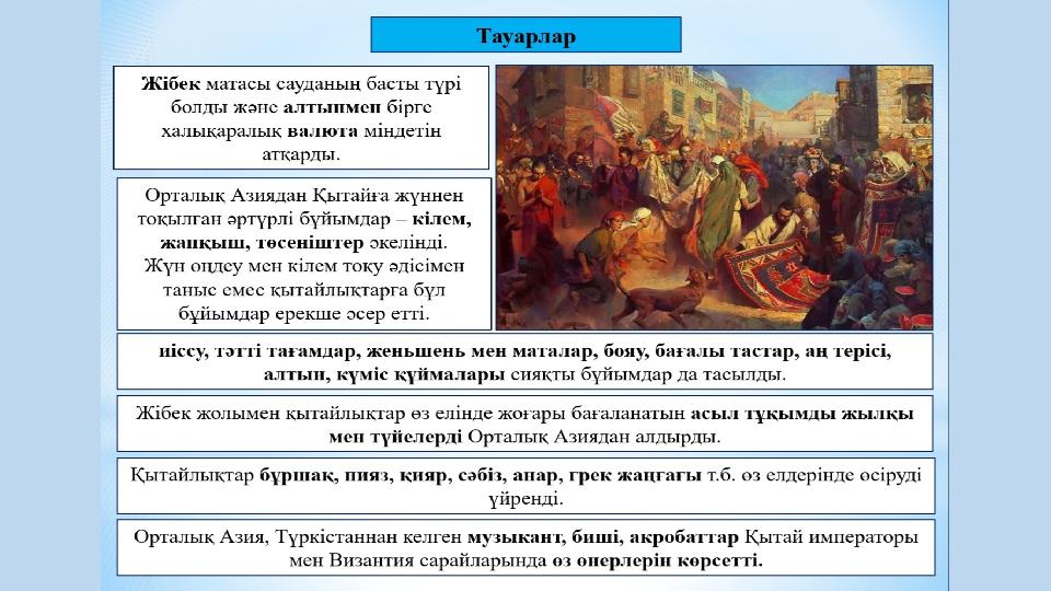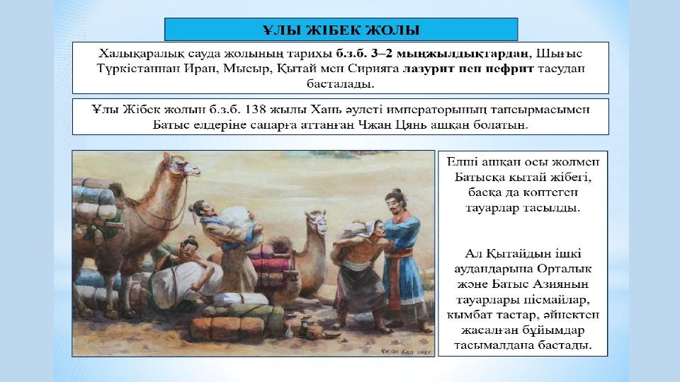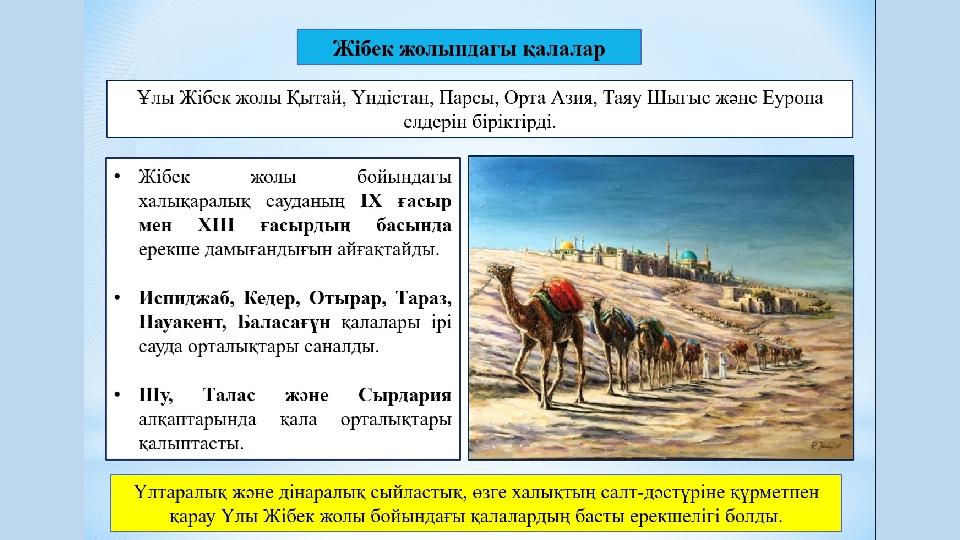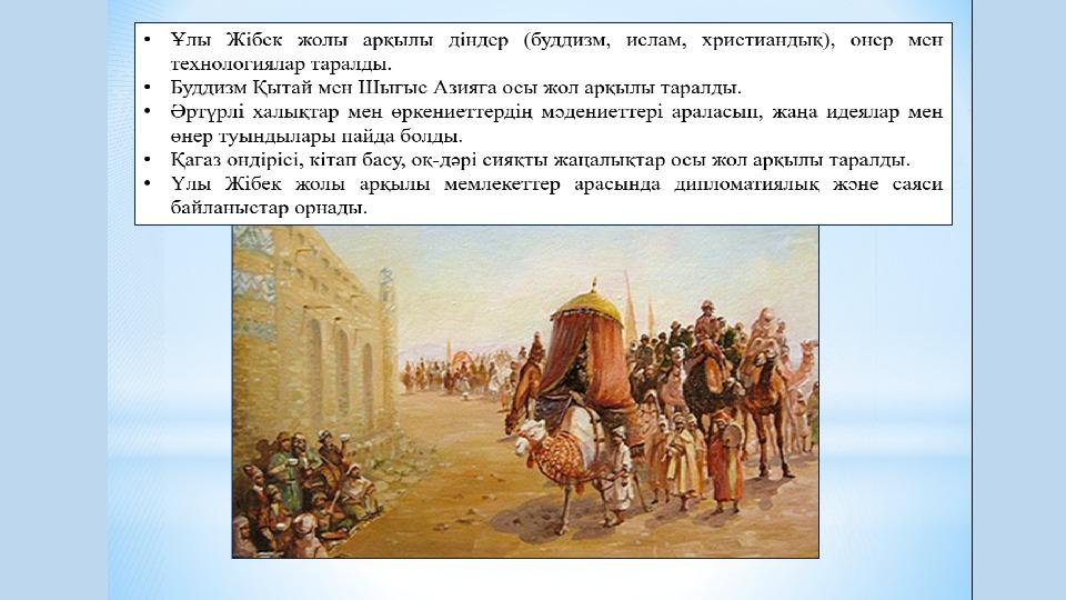 Халықаралық байланыстардың дамуындағы Ұлы Жібек жолының рөлі презентация 6-сынып