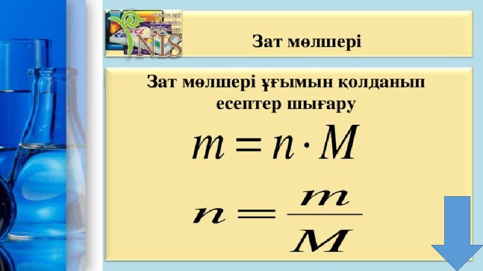 8.1.1.3 -масса, зат мөлшері және құрылымдық бөлшектер санын есептеу Сабақтың мақсаты: