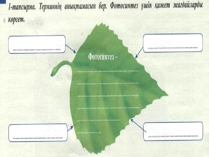 Шығармашылық жұмыс: Фотосинтез және тыныс алудың өзара байланысы. Фотосмнтездің жалпыадамзаттық құндылықтармен байланысына мысалдар келтіру.