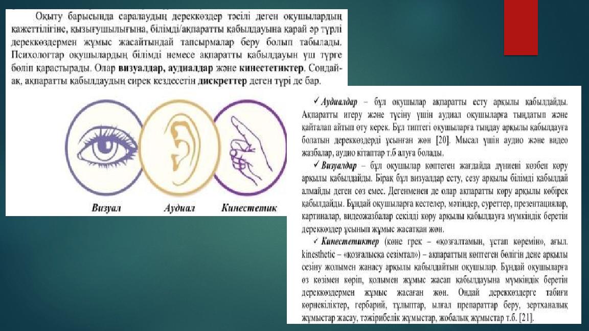 алушылардың қабілетін ашып, білім игеру үшін түрлі әдіс-тәсілдерді қолдану
