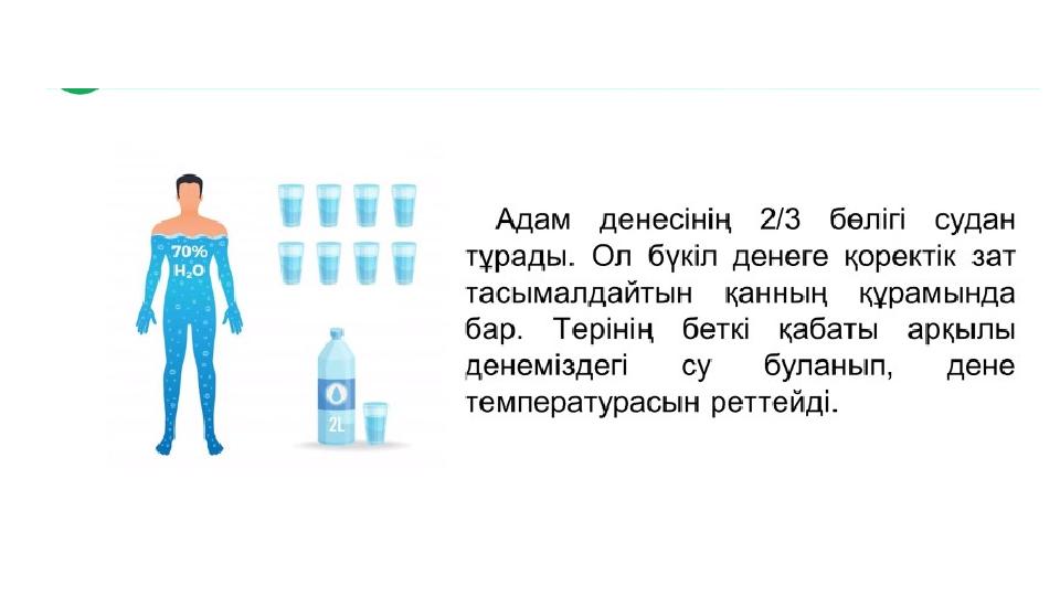 • Адамның ағзасын ..........бөлігін су алып жатыр
