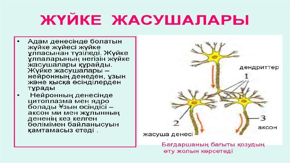 Жүйке жасушасының бөліктерін (денесі, аксон, дендриттер және