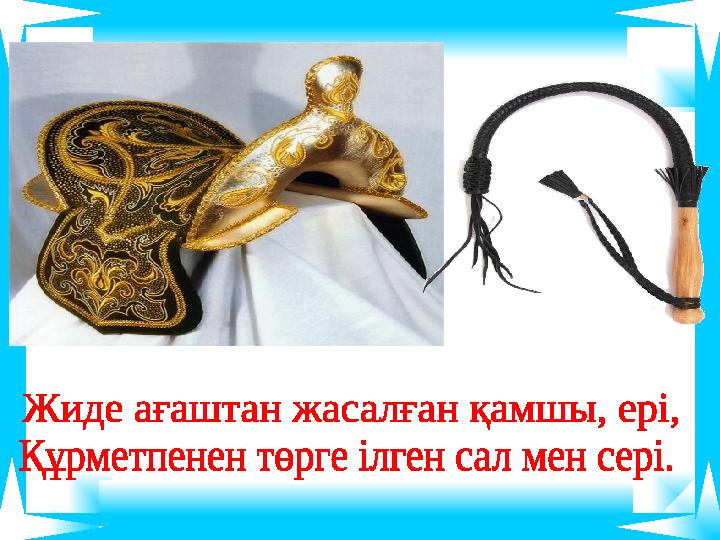 . “Ер қанаты - ат” деген сөз бар. Халқымыз төрт түлік малдың ішінде жылқыны ерекше бағалаған, жылқының етін жеп, сүтінен қымыз ішіп, терісін пайдаланған. Тұтқиылдан жау шапса, бір- бір атқа мініп, дұшпанына тойтарыс берген