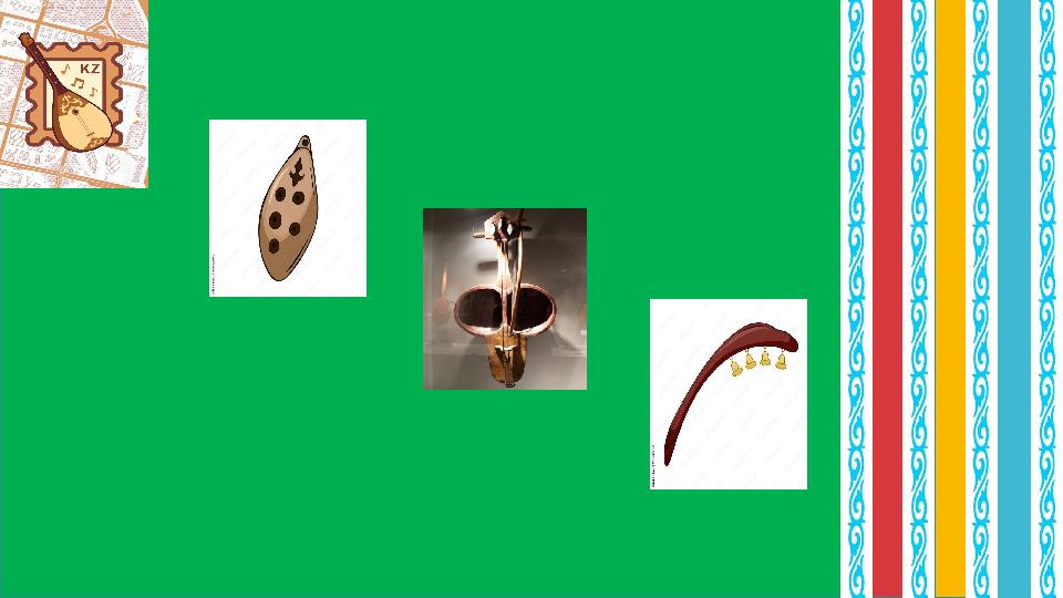 Conclusion The history of the development of musical culture of the Kazakh people is different. The variety of musical instruments is one of the proofs of this.It is our civic duty to recycle and improve forgotten instruments , develop instruments, and widely introduce national art related to these instruments into our lives. Undoubtedly , the revival and restoration of methods of playing ancient Kazakh instruments , buried in the dust of time , will not only raise the content of melodic works to a new artistic stage, but also enrich our national culture and give it a traditional look. Қорытынды Қазақ халқының музыка мәдениетінің даму тарихы өзгеше. Музыка аспаптарының әр түрлілігі де соның бір айғағы.Ұмыт болған аспаптарды қайта өңдеу және оларды жетілдіре түсу , аспаптарды дамыту сондай –ақ осы аспаптарға байланысты ұлттық өнерімізді тұрмысымызға кеңінен енгізу біздің азаматтық парызымыз. Уақыт шаңына көміліп ұмыт қалған қазақтың көне аспаптарында ойнау тәсілдерін қайта өрбітіп , қалпына келтіру - әуезшілік шығармалардың мазмұнын жаңа көркемдік сатыға көтеріп қоймай , ұлттық мәдениетімізді байытып , оған дәстүрлік тұрпат беретіні сөзсіз.
