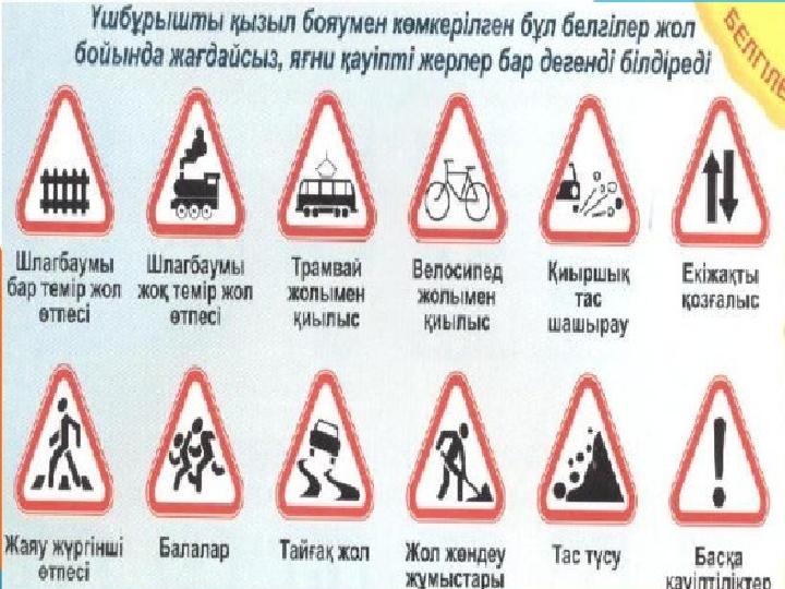 Балалар, жолдағы жол белгілері не үшін керек деп ойлайсыңдар? Жол белгілері жолдарда қозғалысты реттеуге көмектеседі. Жүргізушілер мен жаяу жүргіншілерді жол апаттарынан сақтануды ескертеді, қайда баруға болады және болмайтындығын көрсетеді.