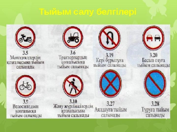Тыйым салатын белгілер.
