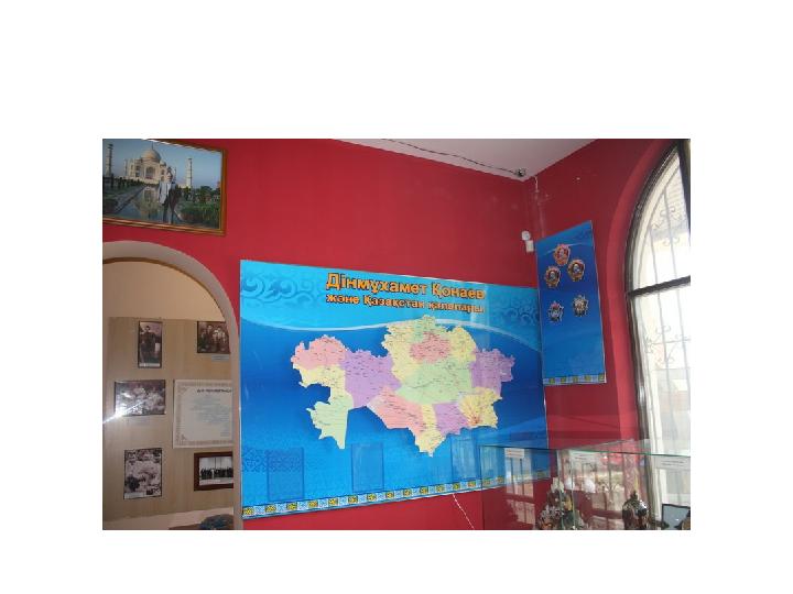 Мұражайда: 2 зал бар. Бірінші зал «Қызыл зал» деп аталады. Мұнда Дінмұхамед Қонаевтың жастық шағындағы суреттер, оған тарту еткен әр түрлі