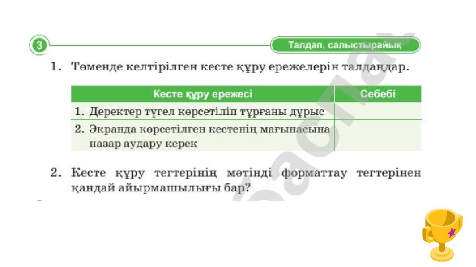 Сабақтың тақырыбы: Кестелер 10– сынып