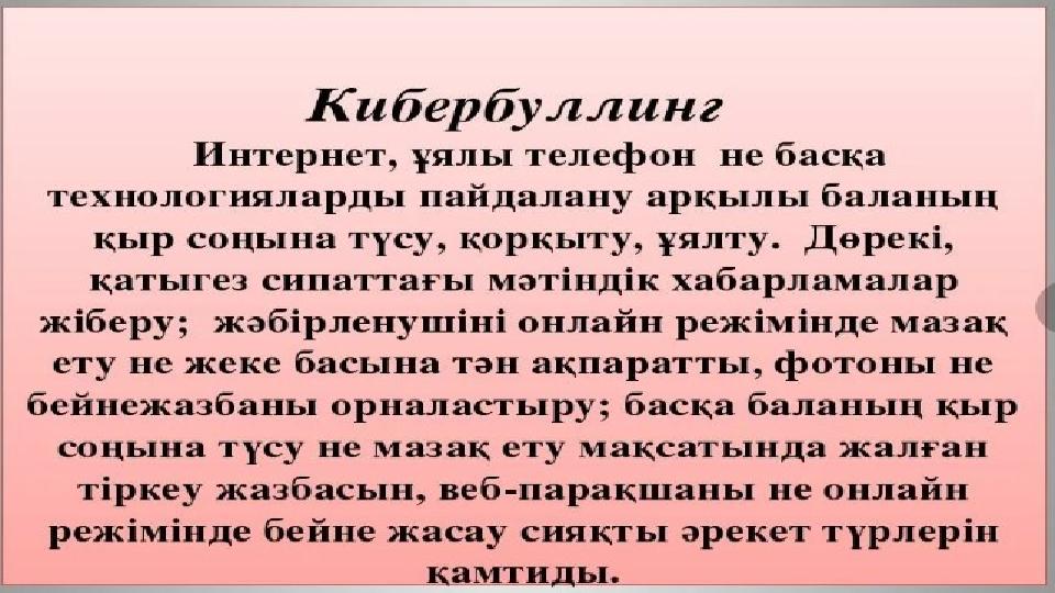Кибербуллинг. Тәрбие сағатына презентация