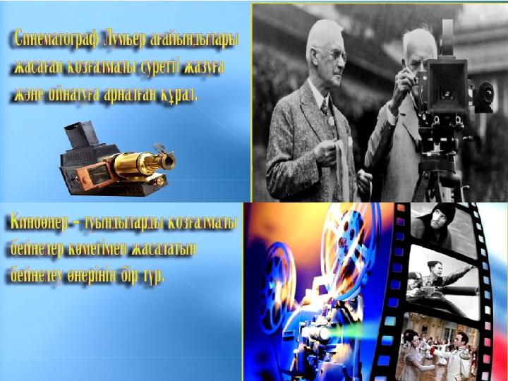 Жаңа сабақ. «Миға шабуыл» әдісі -Киномотографтың пайда болуы жайында не білеміз? -Дыбыссыз кино туралы не білеміз? -Киномузыка терминдерін ата және түсініктеме бер. -Кино өмірінің Қазақстандық туындылары мен осы өнердің жарқын өкілдері жайында айт.