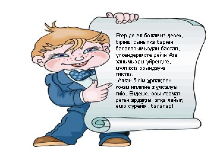 табылады. Ата Заң бізге: - Адамдық қадір – қасиетімізге қол сұғылмауына; -