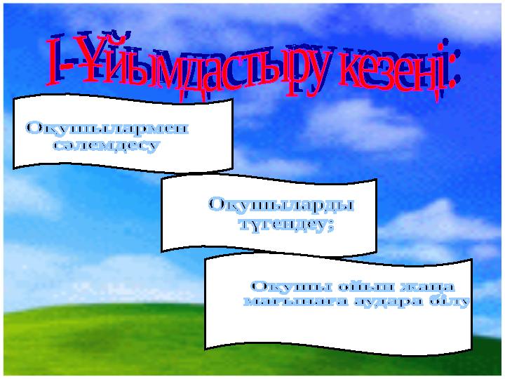 Сабақтың барысы:Сабақтың барысы: І . Ұйымдастыру кезеңі ІІ. Үй тапсырмасы ІІІ. Жаңа сабақ ІV. Жаңа сабақты пысықтау V. Бағалау VІ. Үйге тапсырма