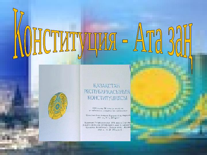 Қазақстан Республикасының Конституциясы 1995 жылы 30 тамызда бүкілхалықтық референдум арқылы қабылданған еліміздің Ата Заңы болып табылады. Бұл конституцияның ерекшелігі елімізде демократиялық, құқықтық, зайырлы және әлеуметтік мемлекеттік құрылыстың құрылғандығын паш етті. Осы Конституцияда тұңғыш рет адам мен азаматтың құқықтары, бостандықтары және міндеттері нақты түрде жария етілді. Конституция бойынша еліміздің1993 жылғы қабылданған Негізгі Заңның кемшілігі, президентіміздің айтуы бойынша оның «шынайы әлеуметтік – экономикалық және саяси жағдайдан қол басқару билігінің құзіреттері нақтыланды. Конституцияға сәйкес біздің республикамызда көптеген жаңа заңдар – қылмыстық, азаматтық, әкімшілік, жер, салық, кеден, т.б. кодекістері қабылданды. Барлық қабылданған заңдар мемлекетіміздің экономикасын, саяси жүйесін жетілдіруге қызмет етуде. Қазақстан Республикасының Конституциясы шынайы демократияның көрінісі болып табылады. Ата Заң бізге: - Адамдық қадір – қасиетімізге қол сұғылмауына; - Тіліміз бен дініміздің дамуына; - Ар – ождан бостандығы құқығын қорғауға; - Адал еңбегіміз бен тапқан мүлкіміз бен меншігімізді сақтауға кепілдік берді.