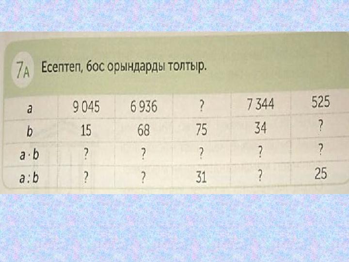 САБАҚТЫҢ МАҚСАТЫ: ЕКІ ТАҢБАЛЫ (ҮШ ТАҢБАЛЫ) САНҒА ЖАЗБАША КӨБЕЙТУ ЖӘНЕ БӨЛУ АЛГОРИТМДЕРІН ҚОЛДАНУ.