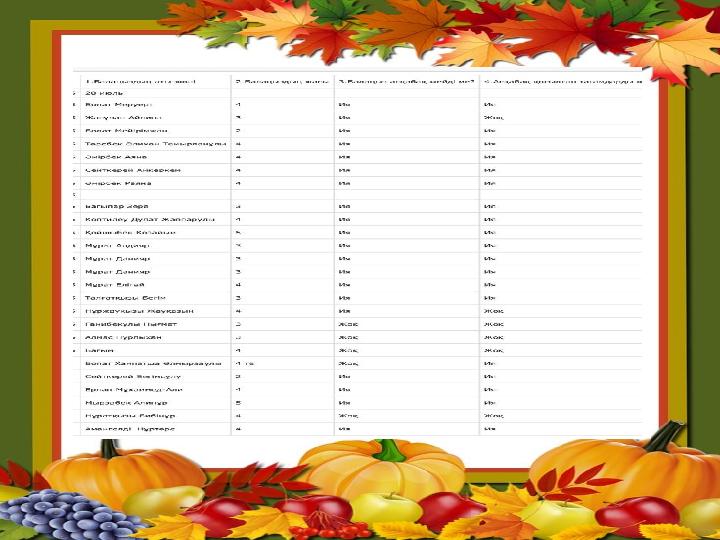 - Балалардың асқабақ туралы білімдерін