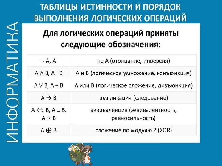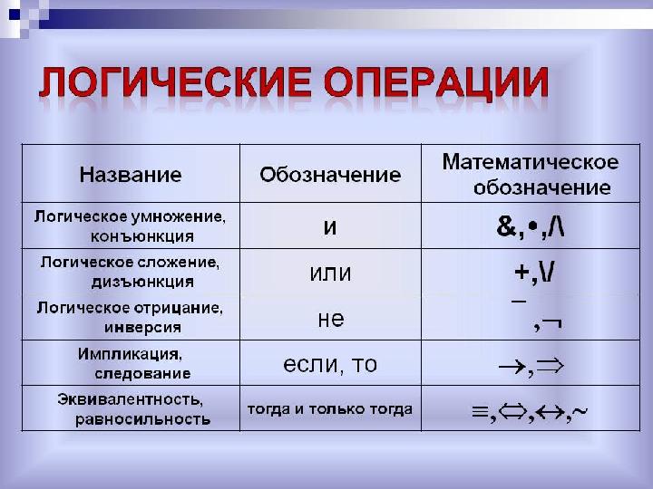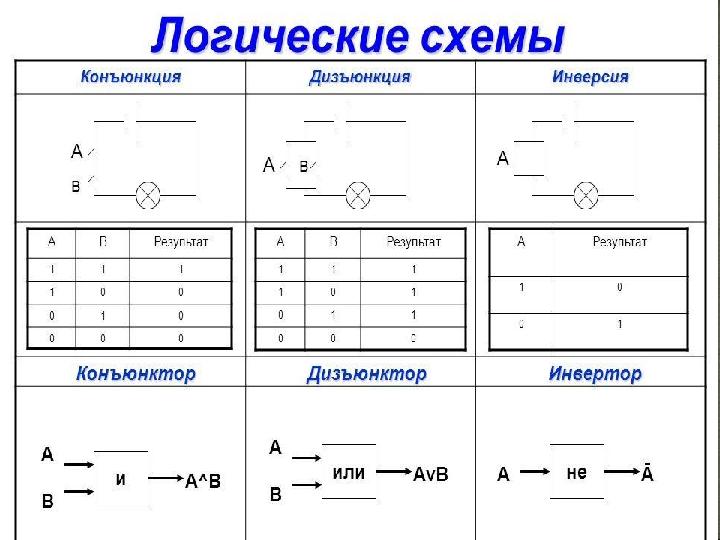 Логические операции (дизъюнкция, конъюнкция, инверсия)