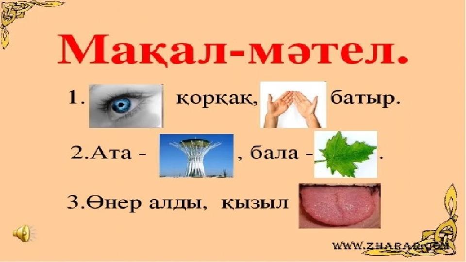 Мақал – сөздің азығы, жұмбақ – ойдың қазығы. презентация