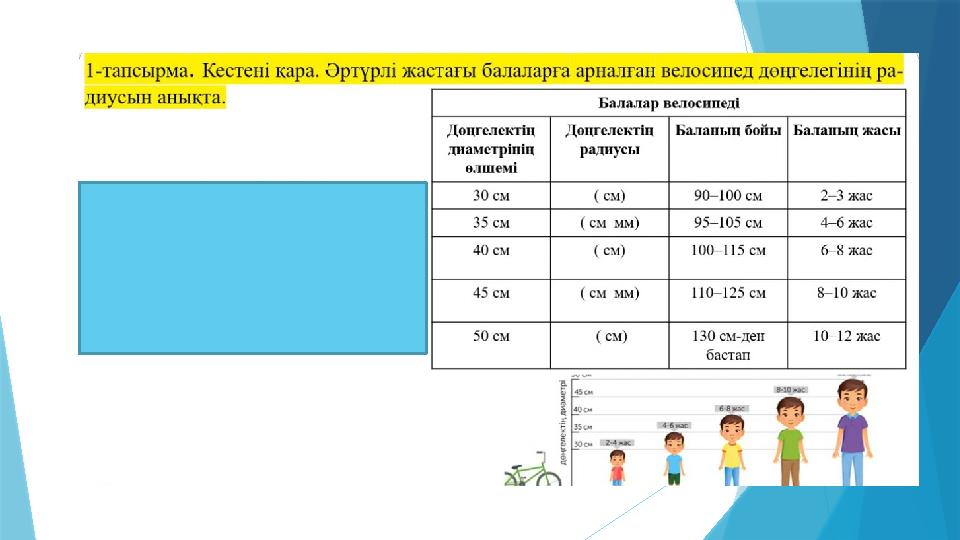 1 Сабақтың тақырыбы: №124 Шеңбер мен дөңгелек Сабақтың мақсаты: шеңбер мен дөнгелекті радиусы бойынша сызады.