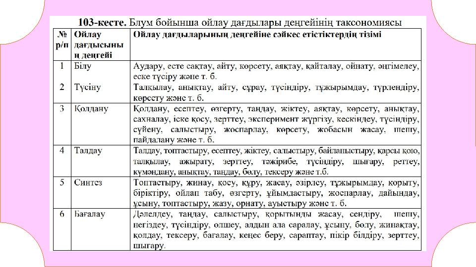 оқу мақсаттарының мазмұнын