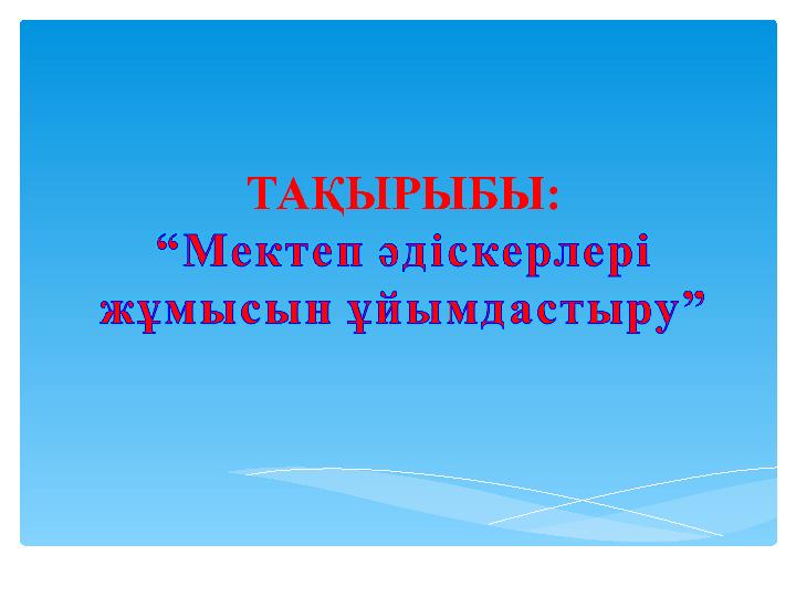 "Мектеп әдіскерлері жұмысын ұйымдастыру" презентациясы