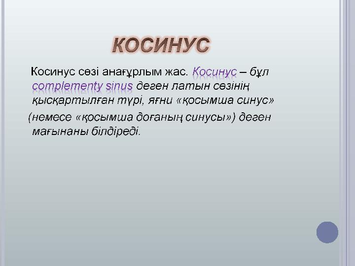 КОСИНУСЫ ЖӘНЕ ТАНГЕНСІН
