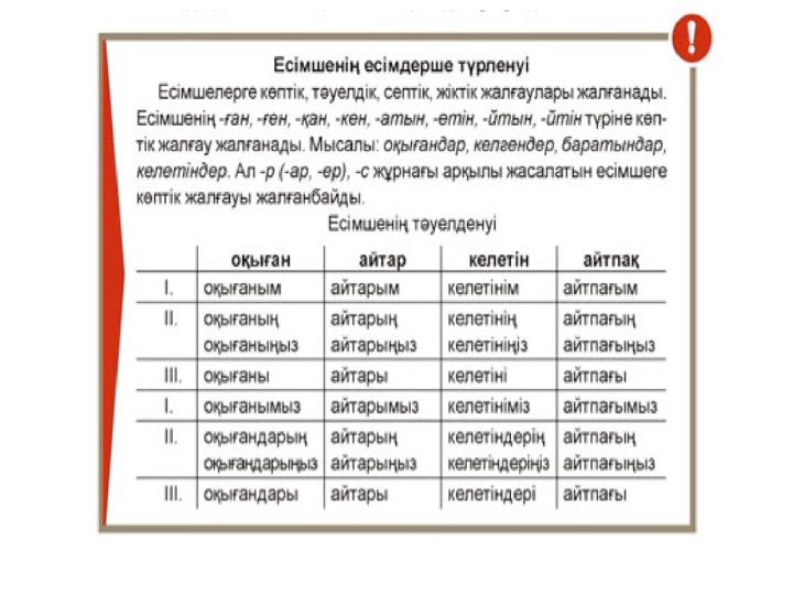 ияжоқ Есімше жіктеліп, етістіктің қызметін атқарады