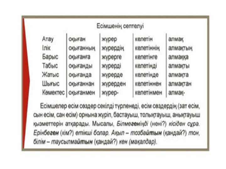 Есімше жіктеліп,