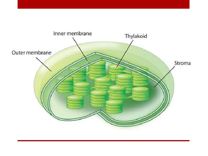 ХЛОРОПЛАСТАР• Хлоропластар – жасыл түсті, пішіні сопақшалау келген пластидтер. Олардың сыртқы мембранасы тегіс, ал ішкісі иіліп, кішігірім жалпақ қапшықтар тәрізді тилакоидтер түзеді.