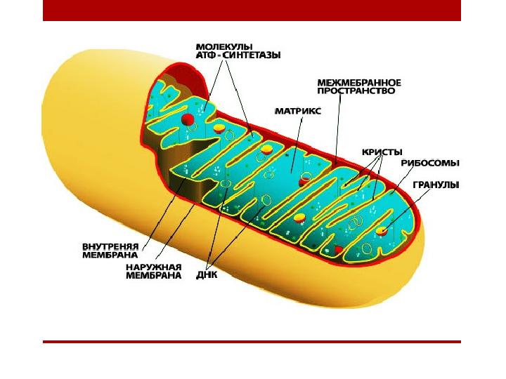 МИТОХОНДРИЯ • Митохондриялар - бүкіл эукариотттық ағзаларға тән қосжарғақшалы органоидтар.Бұлар-өте күрделі құрылысты органоидтар,олардың құрамы екі жарғақшамен шектеледі. C ыртқы жарғақшаның митохондриясы тегіс.