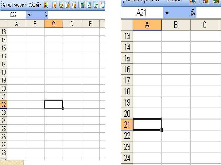 Ұяшықтар мен оның адрестері Ұяшық – бұл баған мен жолдың қиылысы. Ұяшық – бұл баған мен жолдың қиылысы. Ағымдағы ұяшықтың ішіндегі мәліметтері Ағымдағы ұяшықтың ішіндегі мәліметтері мен адресі Формула жолында бейнеленеді мен адресі Формула жолында бейнеленеді Ол электрондық кестенің мәліметтер Ол электрондық кестенің мәліметтер енгізетін ең кіші элементі болып енгізетін ең кіші элементі болып табылады. Әрбір ұяшықтың жол мен табылады. Әрбір ұяшықтың жол мен бағандардың белгіленуінен тұратын адресі бағандардың белгіленуінен тұратын адресі болады. Мысалы: болады. Мысалы: С22С22, , АА21, 21, Е15Е15, , Е28Е28..