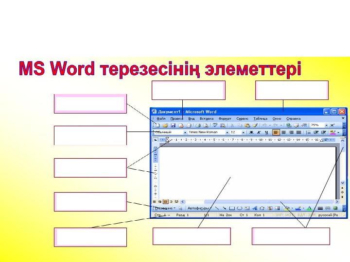 Қалып-күй жолыСурет салу панелі СызғышПішімдеу панелі Тақырып жолыМеню жолы