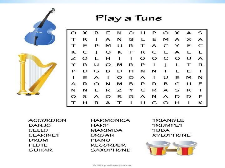 *Musical instruments*Zhetigen- Жетіген *Kobyz - қобыз *Dombra- домбыра *Drum- барабан *Piano- пианино *Guitar – гитара
