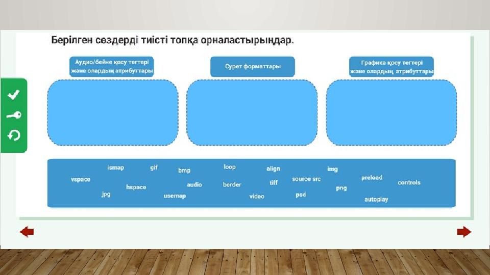 • : Меңгерілетінбілім • ; мультимедиа • ; мультимедиалықтегтердіңтүрлері • web- беткеаудиожәнебейне файлдардыорналастыру
