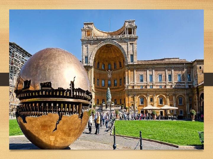 • Музеи Ватикана ( итал. Musei Vaticani ) — комплекс музеев, расположенных на территории государства Ватикан . Их коллекции созданы римскими папами и содержат художественные работы классических мастеров, включая произведения эпохи Возрождения . • Музеи основаны папой Юлием II в начале XVI века. В маршрут по музеям Ватикана входят Сикстинская капелла с потолочными росписями Микеланджело , и станцы , оформленные Рафаэлем . В 2013 году музеи Ватикана посетило 5,5 млн человек, что поставило их на пятое место среди самых посещаемых музеев [3] . • Музеи насчитывают 54 галереи, или зала, среди которых Сикстинская капелла является последней.Музеи Ватикана в Риме