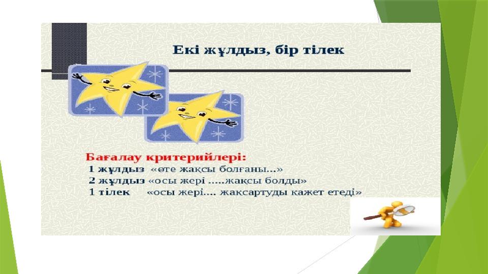 «Төрт сөйлем» тәсілі. Пікір. Оқыған мәтін бойынша өз пікіріңді бір сөйлеммен жаз. Дәлел. Өз пікіріңді бір сөйлеммен дәлелде. Мысал. Пікіріңді өмірмен байланыстырып, бір мысал келтір. Қорытынды. Тақырып бойынша қорытынды жаз.