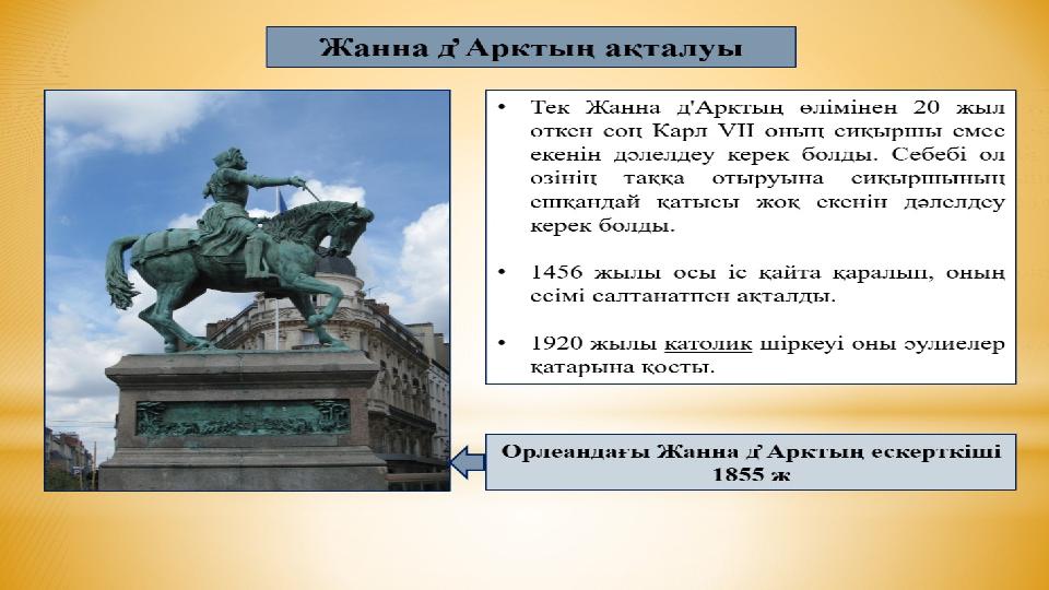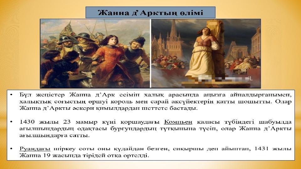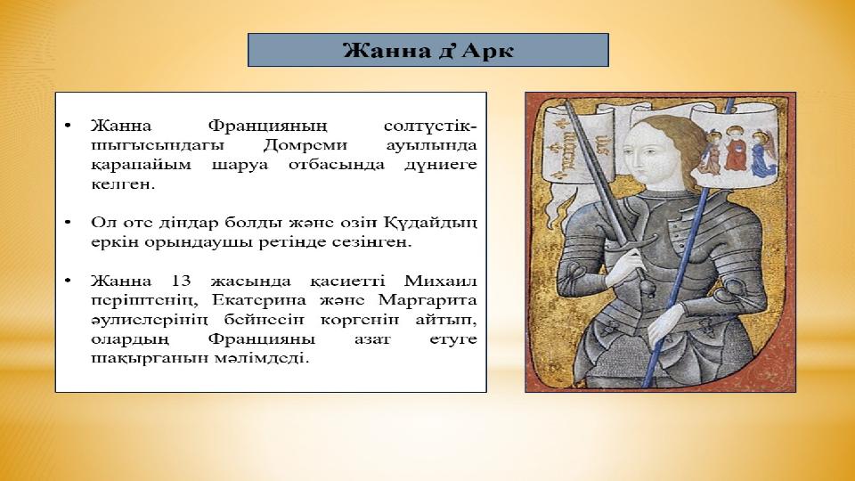 Неліктен Жанна д'Арк француз халқының есінде сақталады? Презентация 6-сынып