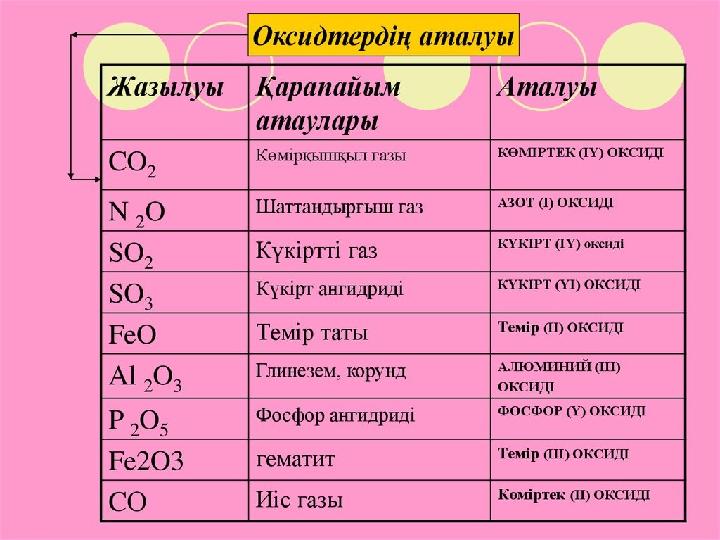 Оксидтердің құрамын, жіктелуін, номенклатурасын білу