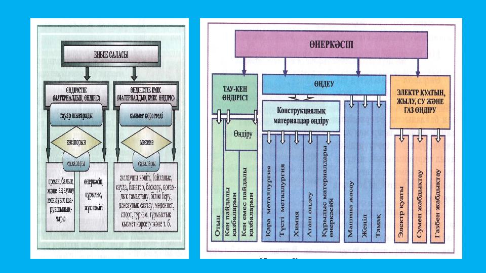 түсіну Ітоп.Өнеркәсіп Өнеркәсіптің құрамы мен құрылымы ІІ топ.Кооперация Өндіруші немесе өңдеуші салалардың қайсысы басым болғаны елімізге қолайлы? Неге? ІІІ топ.Комбинат Өнеркәсіпті орналастырудың принциптері мен факторлары ІҮ топ.Кластерлер Зауыт салу үшін қандай жағдайлар қажет ?Ү топ.Өндіріс Өнеркәсіптің аумақтық ұйымдастырылуы. Топтық жұмыс