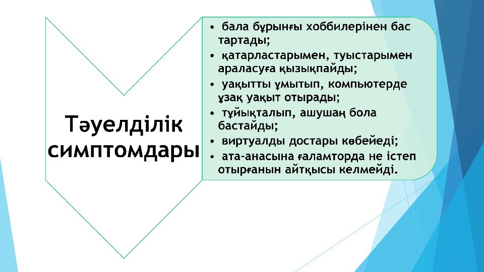 Осы белгілердің бесеуі бала бойында анықталса, «компьютер ойынына тәуелділік ықтимал»