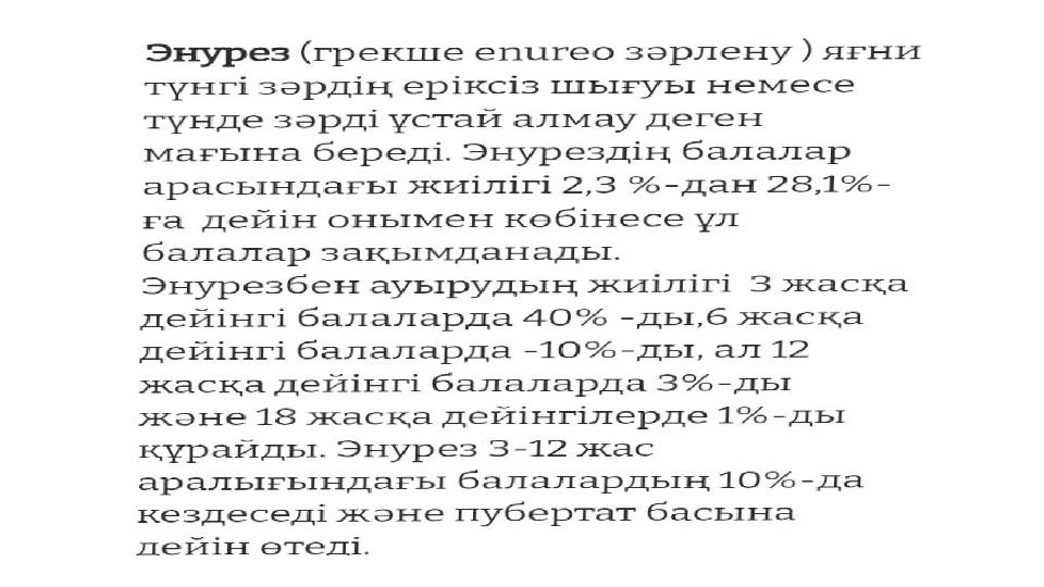 ОҚУШЫЛАРДЫҢ ЗӘР ШЫҒАРУ ЖҮЙЕСІНІҢ ФИЗИОЛОГИЯЛЫҚ ДАМУЫ. ЭНУРЕЗ