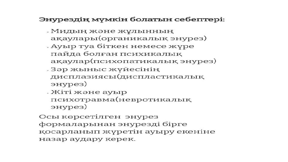 ОҚУШЫЛАРДЫҢ ЗӘР ШЫҒАРУ ЖҮЙЕСІНІҢ ФИЗИОЛОГИЯЛЫҚ ДАМУЫ. ЭНУРЕЗ презентация