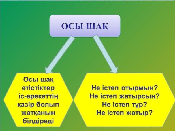 Осы шақ сөйлеп тұрған сәтпен байланысты қимылдың, іс-әрекеттің болып жатқанын, не