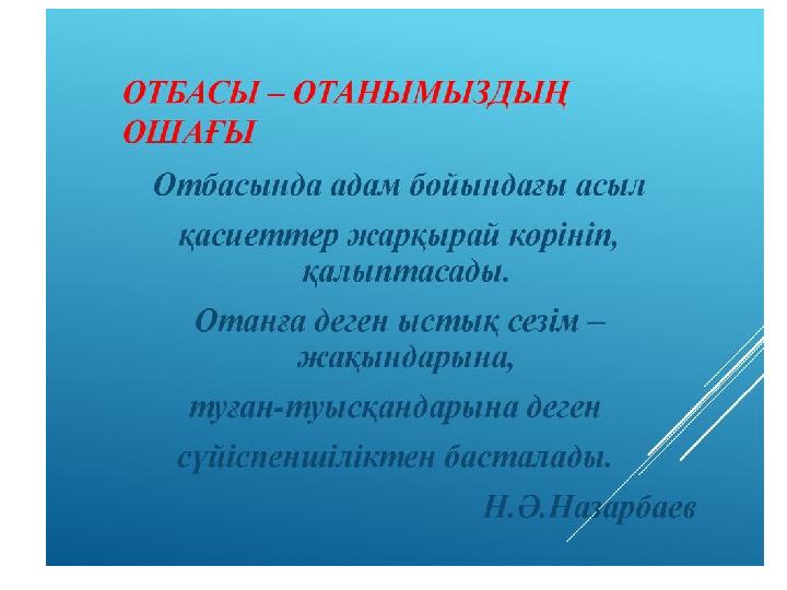 •Отансыз халық болмайды. Тек Отаны бар ел ғана шынайы