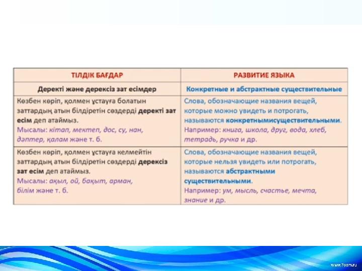 Салыстыру Деректі зат есім Дерексіз зат есім