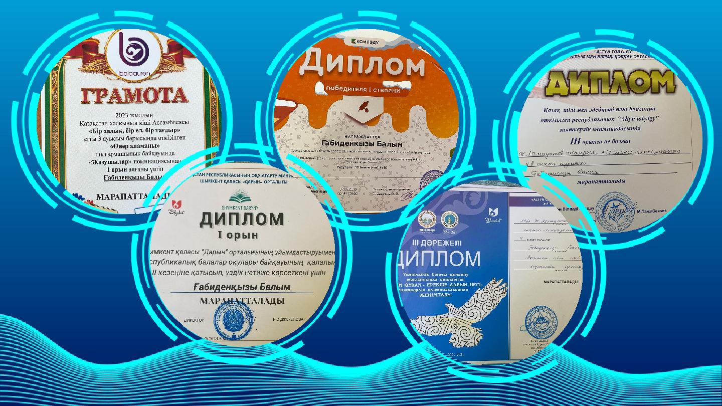 ҒАБИДЕНҚЫЗ Ы •Ж.Аймауытов атындағы №64 мектеп- гимназиясының жас тілшісі •ҚР Мәдениет және Ақпарат министрінің марапат иесі •«ҚР Дарыны - 2024» •Үздік түлек , болашақ журналист • Кондитер БАЛЫМ
