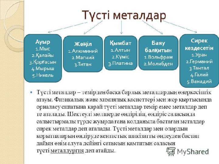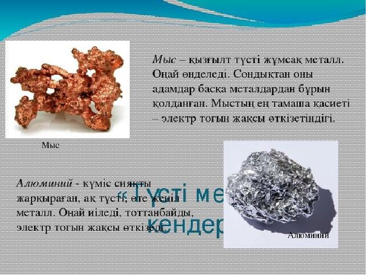 Пайдалы қазбалар. Қара металл кендері. Түсті металл кендері. 4 сынып қосымша материялдар